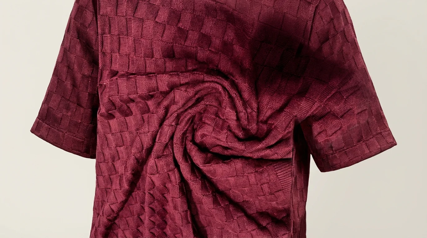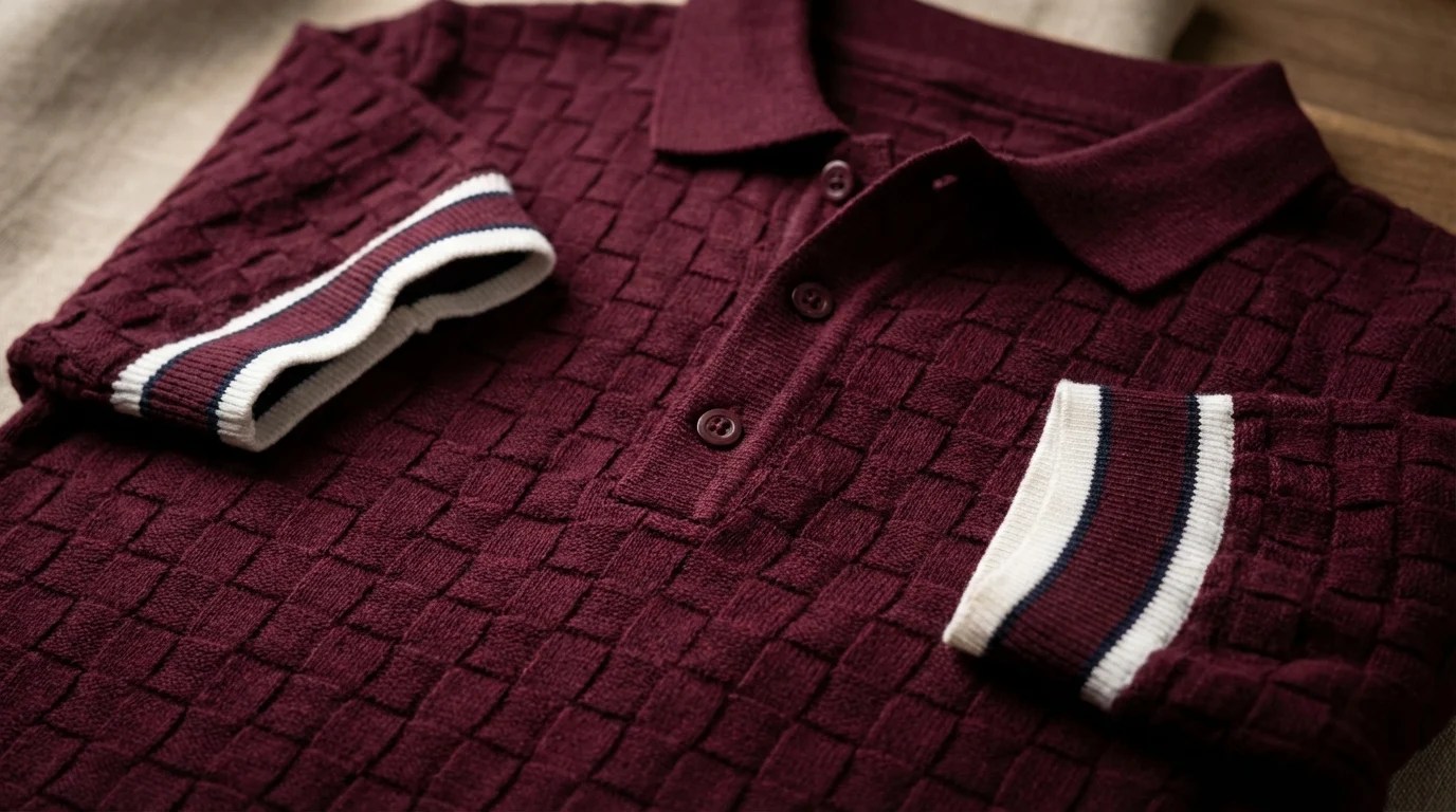 Elevate your everyday wardrobe with this meticulously crafted knit polo. Defined by its sophisticated deep maroon hue and a distinctive basket-weave texture, this piece bridges the gap between casual comfort and refined tailoring. The mid-weight knit provides a structured silhouette that maintains its shape, offering a tactile depth that stands out in a sea of basic cotton tees.