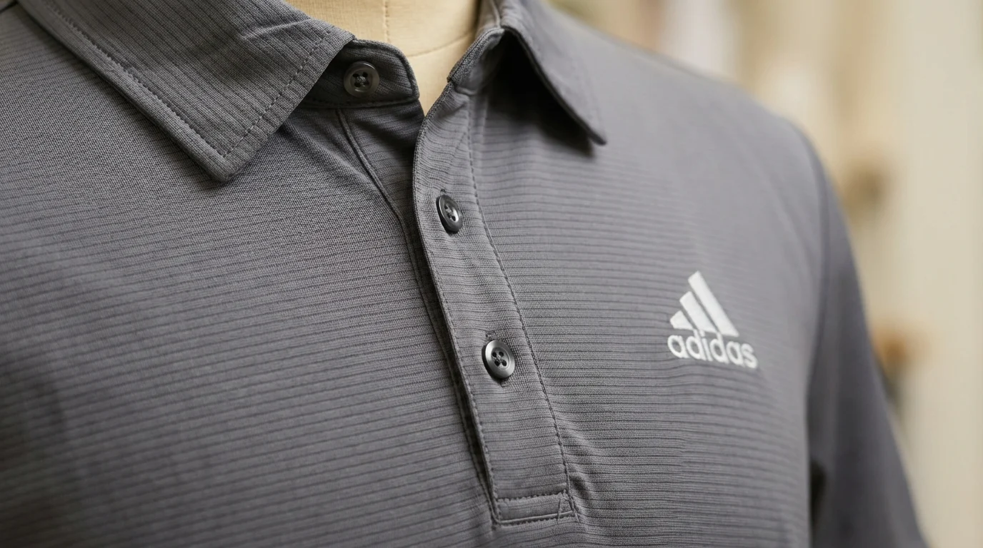Stay-Flat Collar: Ribbed polo collar designed to resist curling and stay sharp.