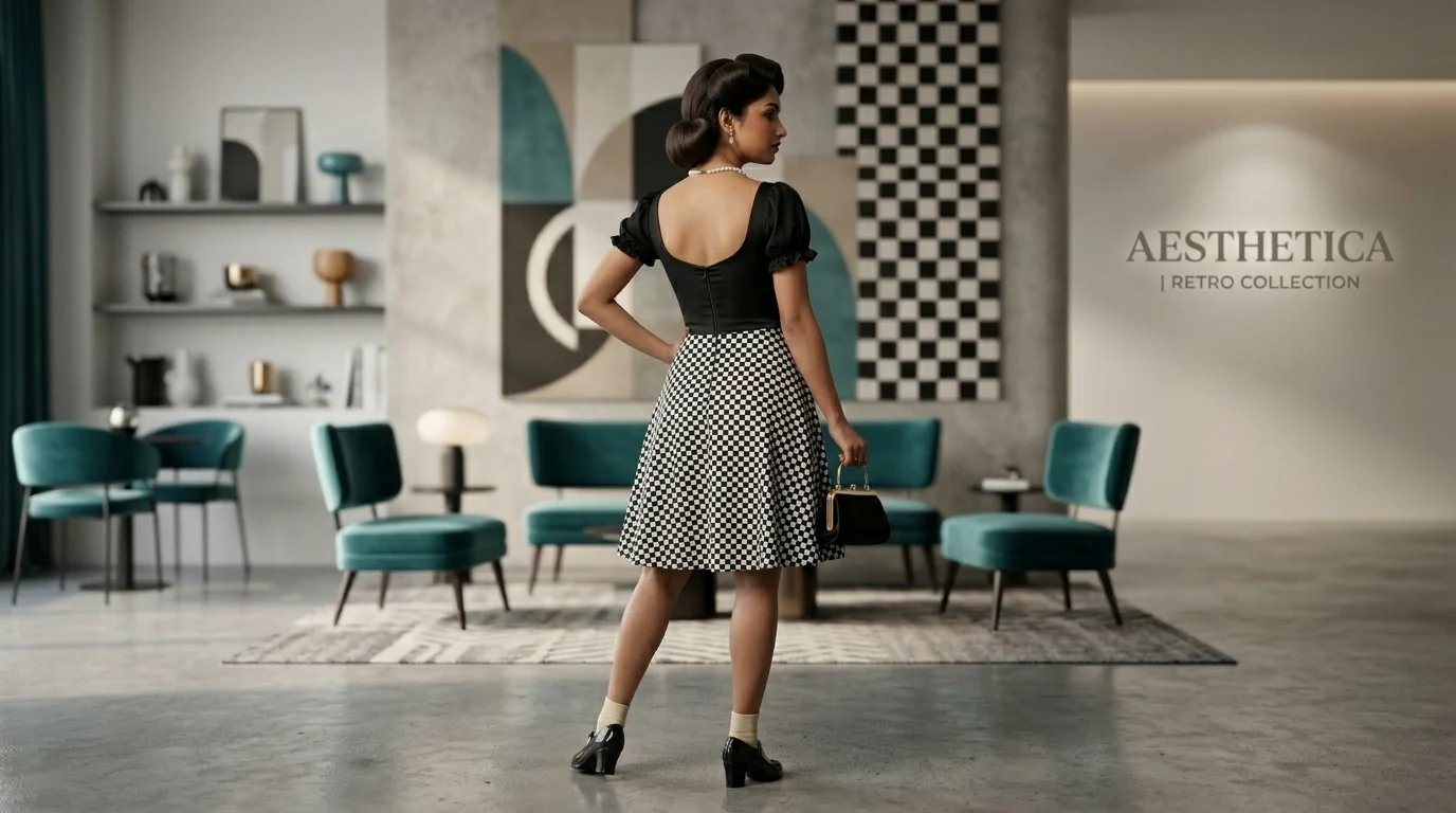 Retro Aesthetics: Featuring a bold monochrome checkered pattern that captures the essence of 1950s chic.