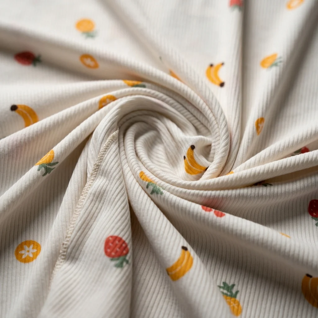 Playful Orchard Aesthetic: Featuring a charming, all-over fruit print including strawberries, cherries, and citrus.