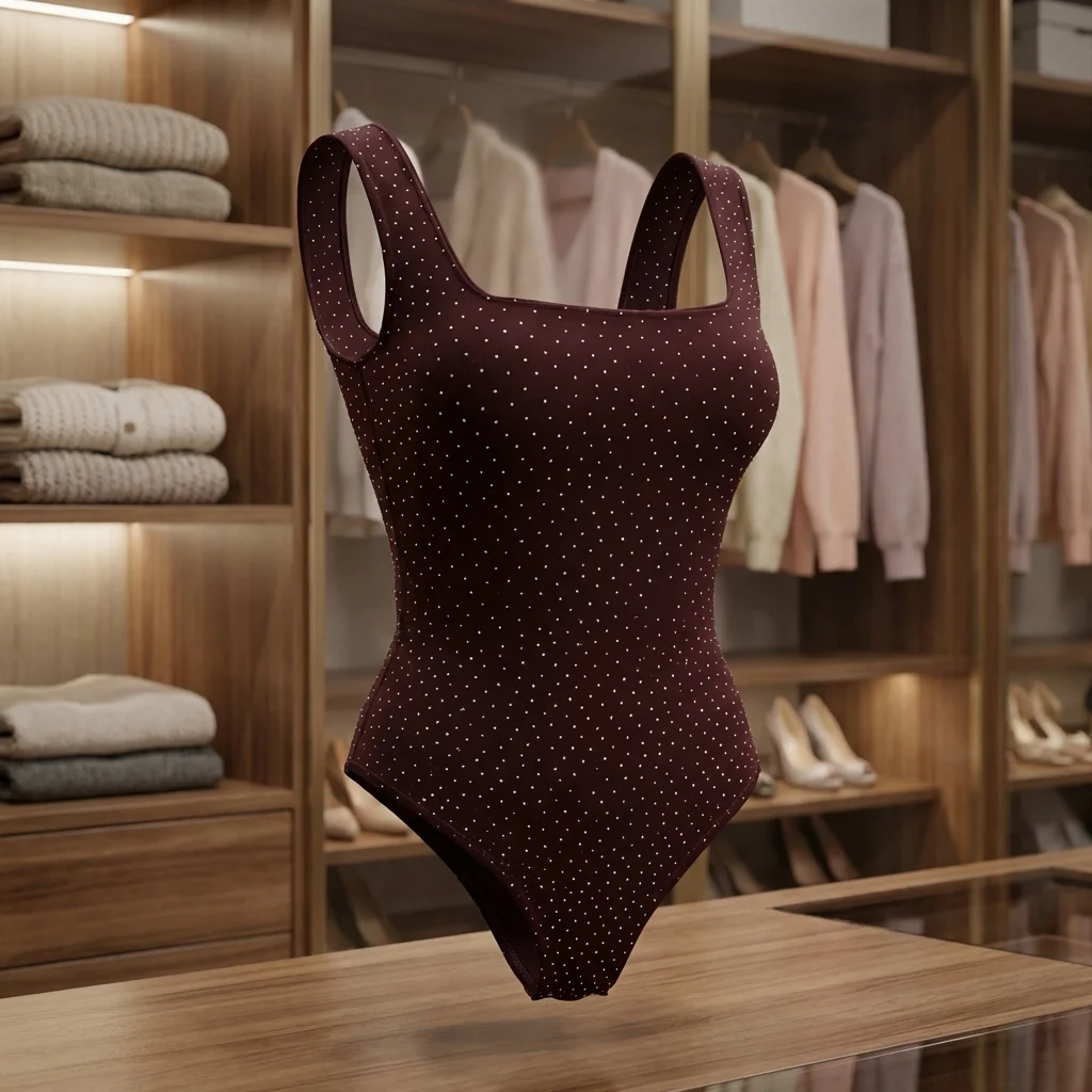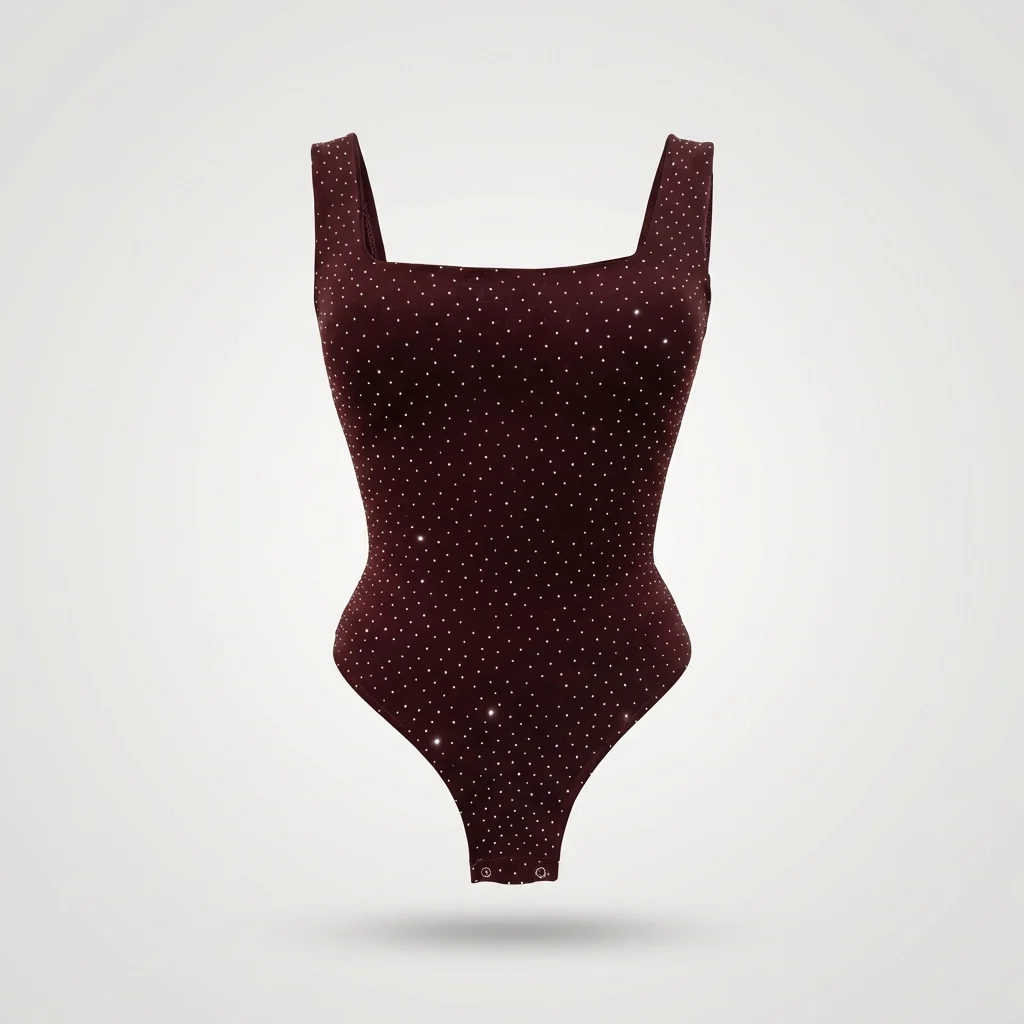 Feature Details SKU ID 70005220260419 Category Women’s Western Wear Gender Women Top Type Bodysuit Fabric Ribbed Knit (Cotton-Poly Blend likely) Fit Type Slim Fit Sleeve Type Sleeveless / Broad Straps Neckline Square Neck Length Waist Length (Bodysuit) Pattern / Print Rhinestone Embellished Occasion Party Wear, Evening Out, Clubbing Season All-Season / Transitional Care Instructions Hand wash cold separately; do not tumble dry; iron on reverse.