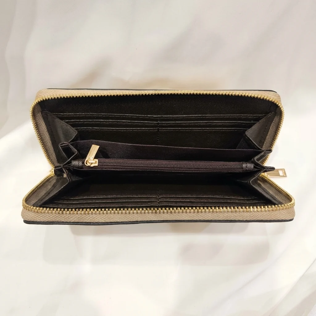Secure & Sleek: The smooth gold-tone perimeter zipper ensures your essentials stay safe while maintaining a slim profile.