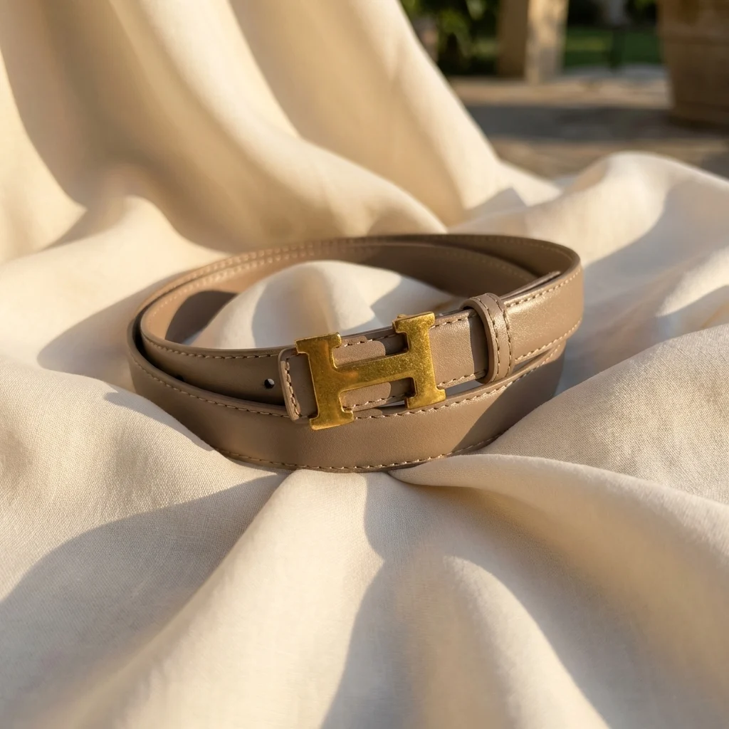 Feature Details SKU / ID 70005220260459 Category Fashion Accessories Gender Women Belt Type Waist / Skinny Belt Fabric / Material Premium Leather (Smooth Finish) Buckle Style Gold-tone H-Motif Fit Type Adjustable Pattern / Print Solid / Plain Occasion Formal, Semi-formal, Luxury Casual Season All-Season Care Instructions Wipe with a clean, dry cloth; store in a dust bag to avoid scratches on hardware.