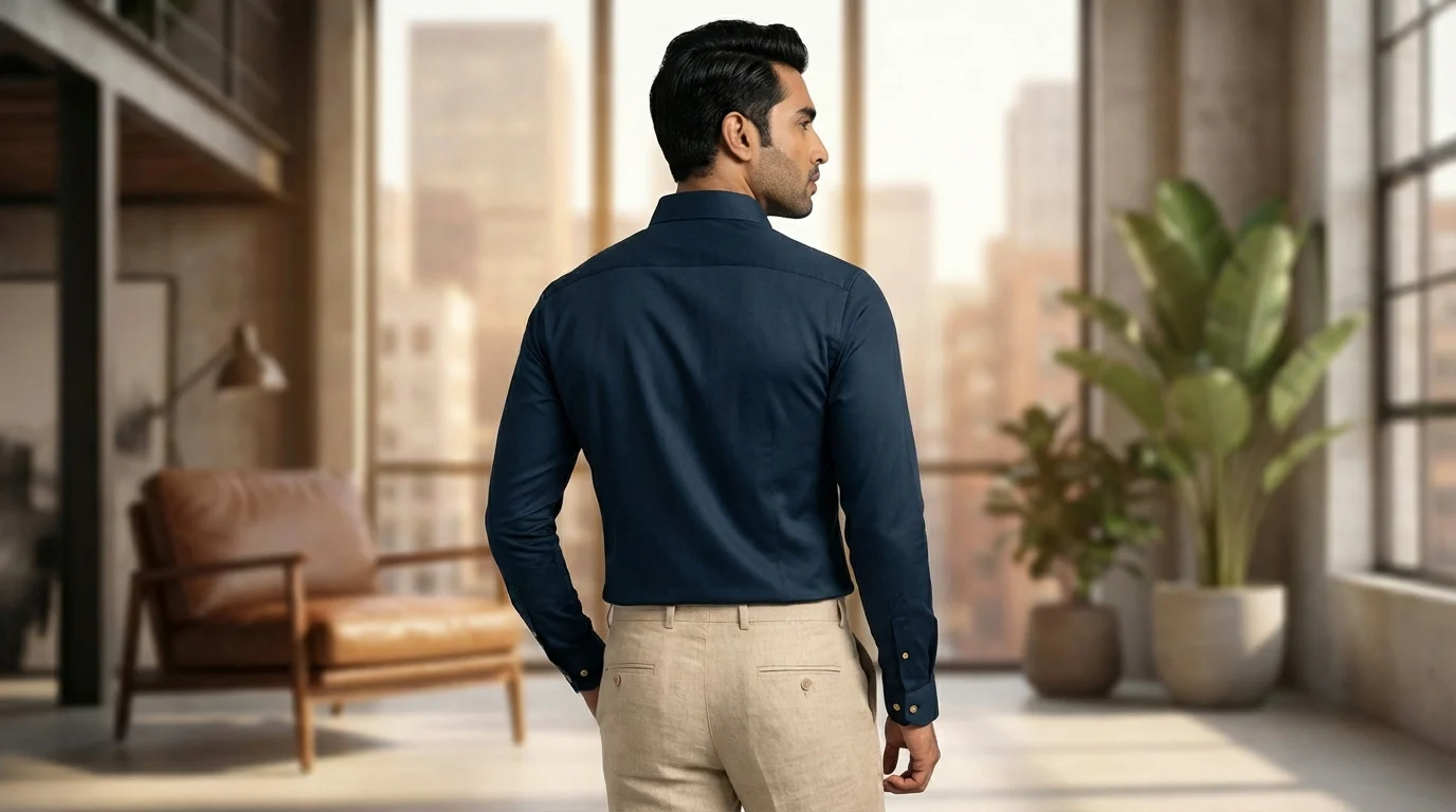 Modern Tailoring: Tapered slim fit with structured long sleeves and buttoned cuffs.