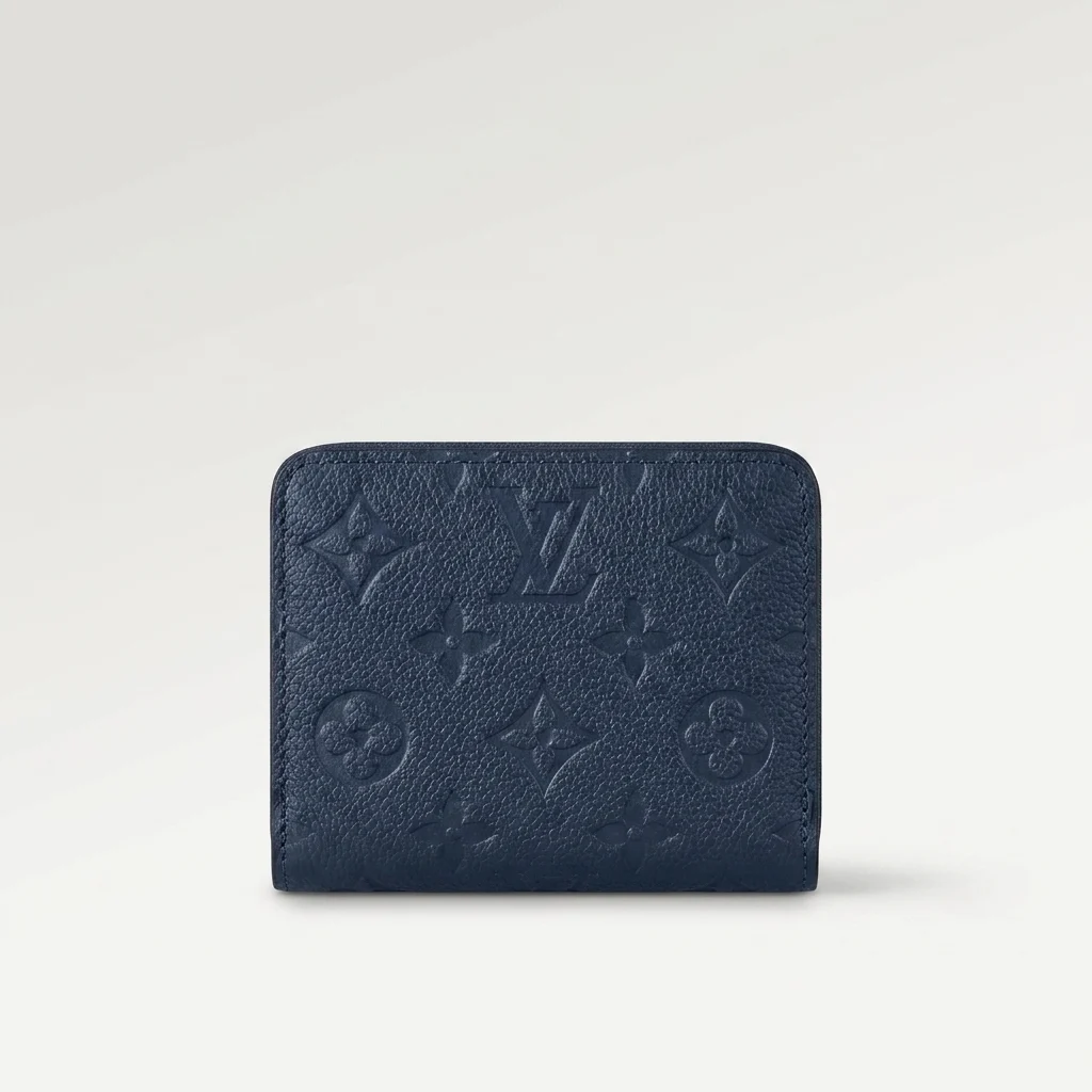 The Louis Vuitton Zippy Coin Purse is a masterclass in functional elegance. Dressed in a deep marine blue hue, the grained cowhide leather is deeply embossed with the house’s signature Monogram pattern. This piece is designed for the modern woman who values a minimalist footprint without sacrificing the prestige of high-fashion craftsmanship.