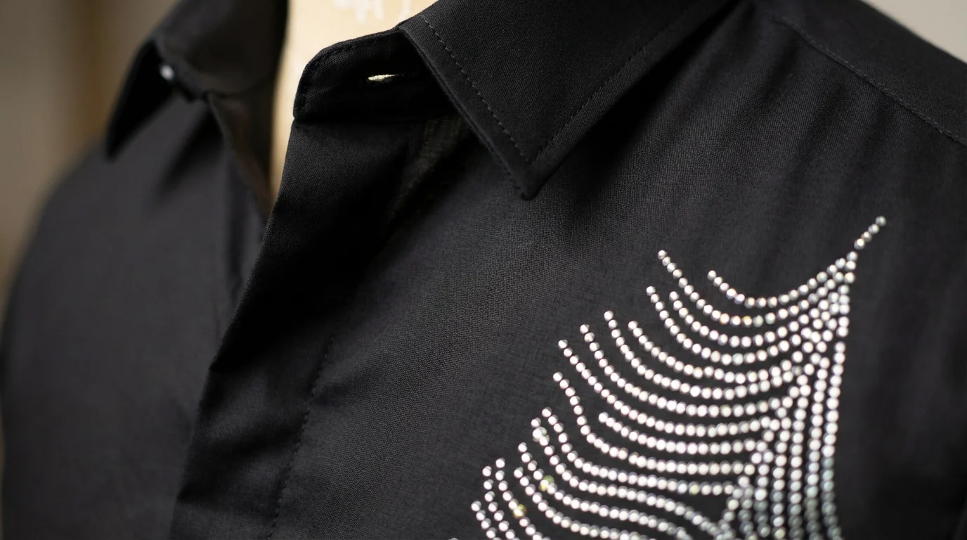 Matte Texture: Premium black fabric with a smooth, non-reflective finish that elevates the metallic shimmer of the stones.