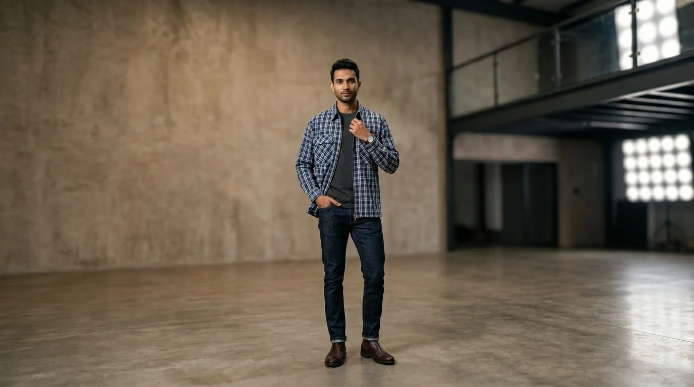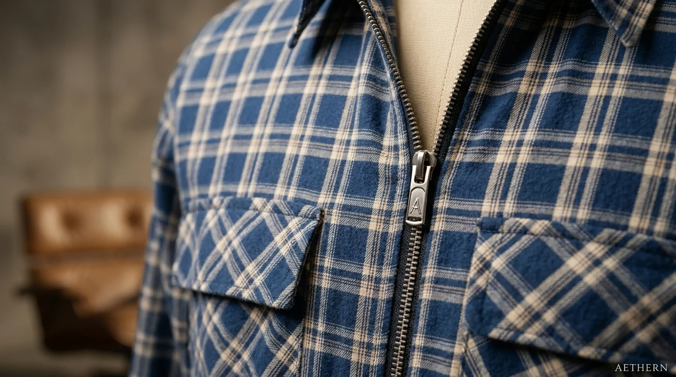 Elevate your layering game with this sophisticated zip-front overshirt, designed for the modern Indian wardrobe. Merging the structured silhouette of a jacket with the lightweight comfort of a classic flannel, this piece features a timeless blue and cream plaid pattern. The precision-crafted zipper closure offers a contemporary alternative to traditional buttons, providing a sleek, streamlined aesthetic that transitions effortlessly from a focused workday to a relaxed evening out.