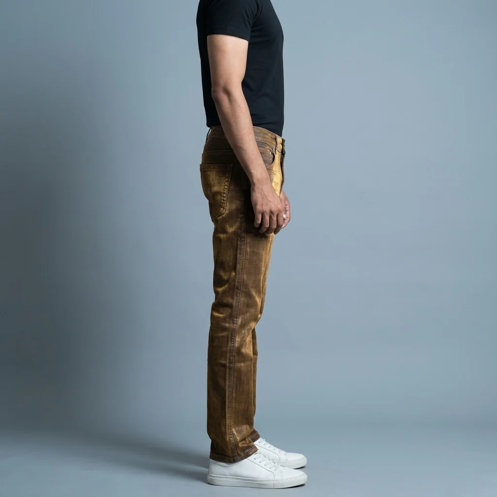 • Strike a Bold Statement: These jeans feature a unique metallic bronze coating that offers a high-fashion, industrial aesthetic perfect for nightlife and premium events.