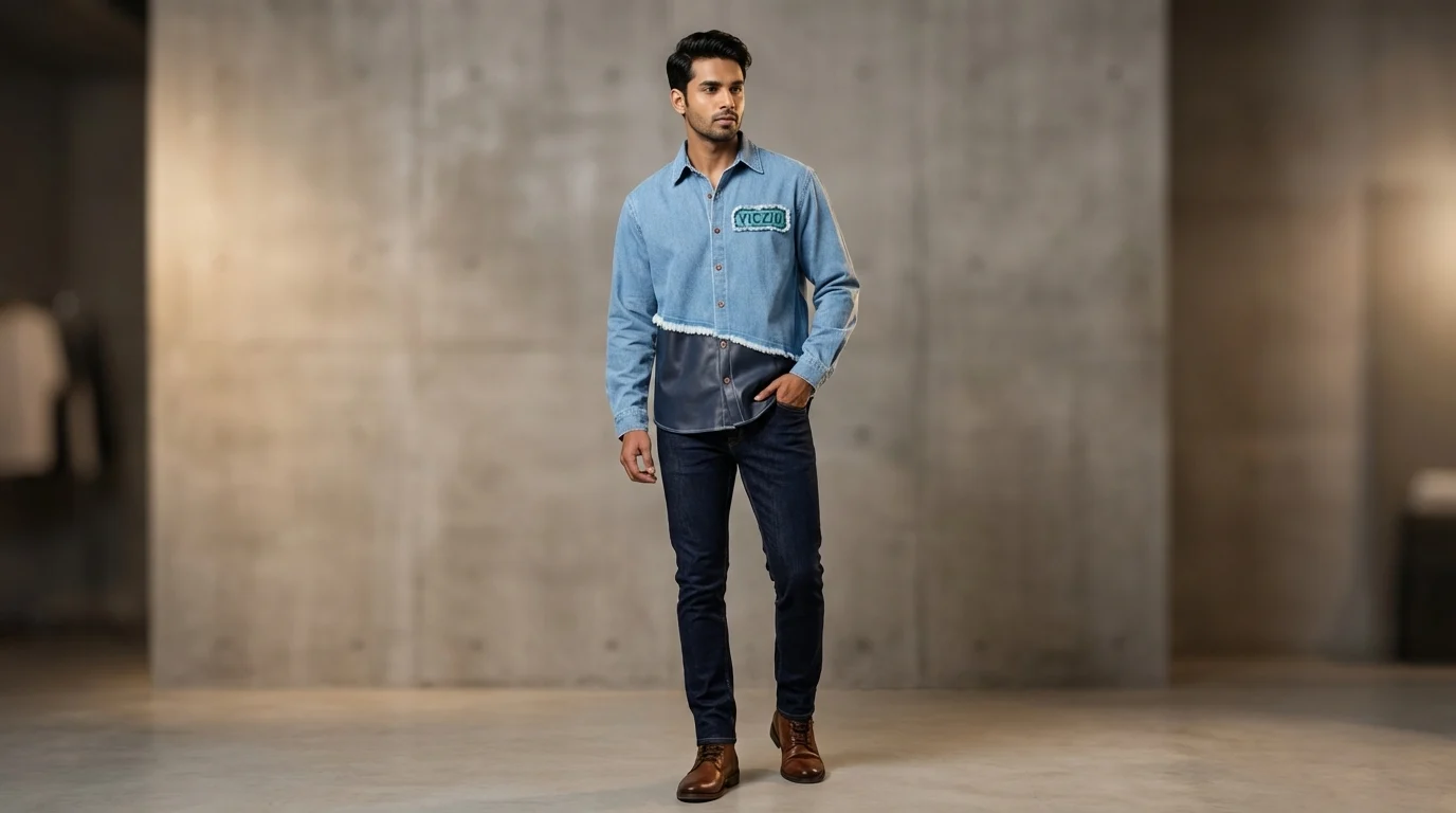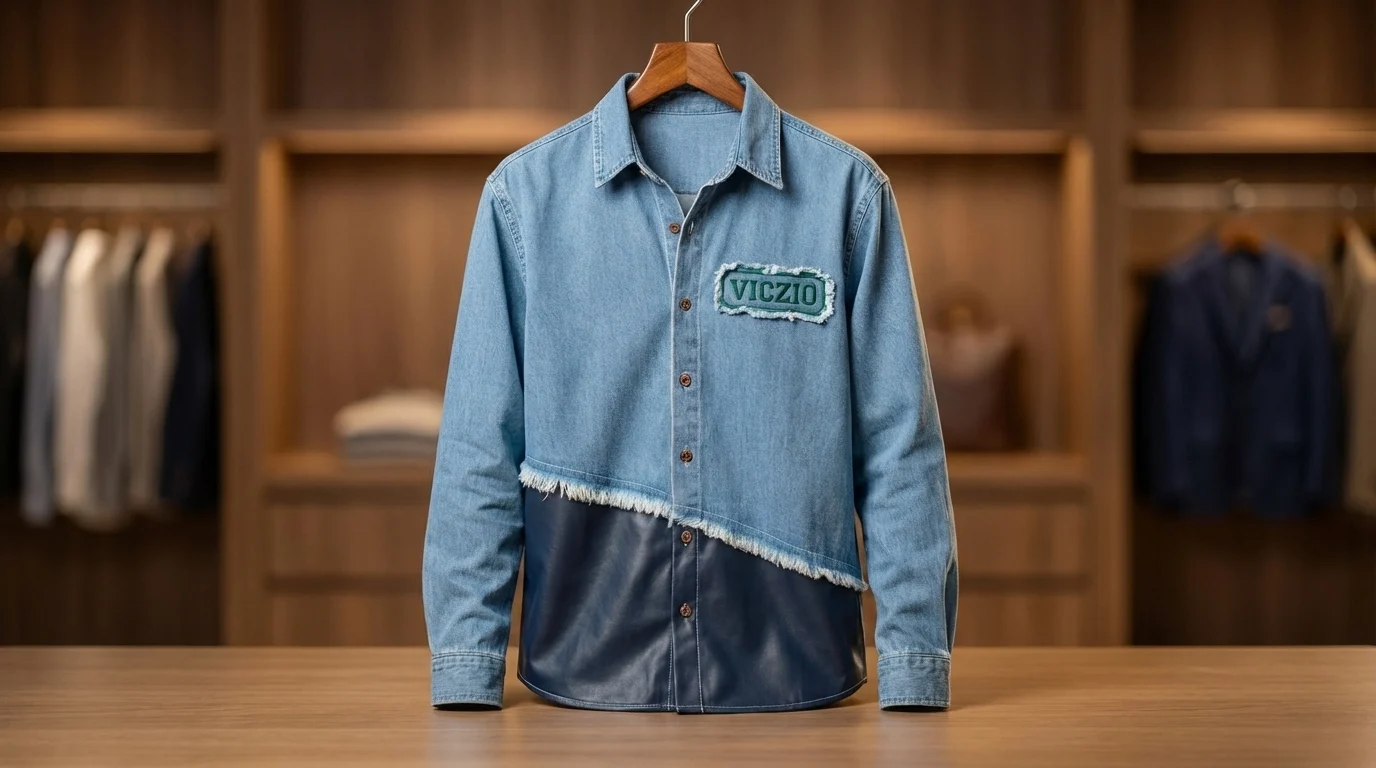 Crafted for the individual who views fashion as an art form, this garment incorporates premium details including a signature “VICZIO” brand patch on the chest and contrasting amber-toned buttons. The interplay of textures—the breathable cotton denim and the sleek, semi-matte finish of the synthetic leather—ensures this shirt stands out in any high-end casual setting across India’s evolving fashion landscape.