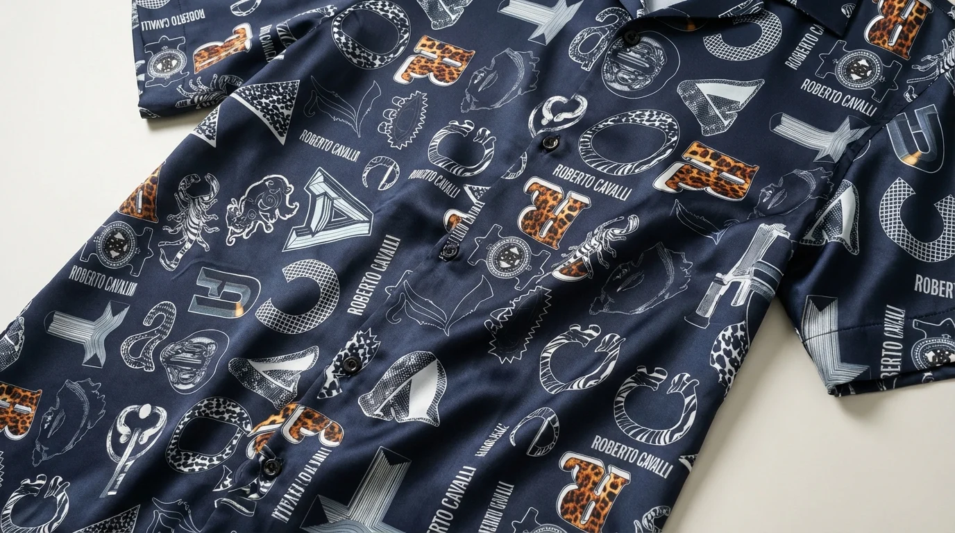 High-Impact Visuals: Signature Roberto Cavalli monogram print with leopard-print accents.