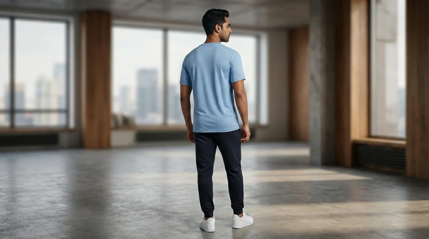 The shirt features a precision-tailored silhouette with a reinforced crew neckline that maintains its shape wash after wash. The fabric is chosen for its smooth texture and natural breathability, ensuring you stay cool and comfortable in the diverse Indian climate. Every detail, from the double-stitched hems to the soft-touch finish, reflects a commitment to quality that stands out in its simplicity.