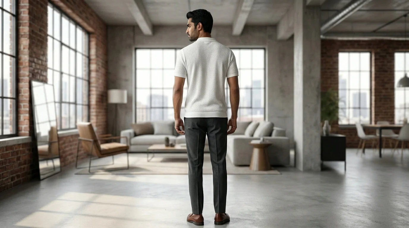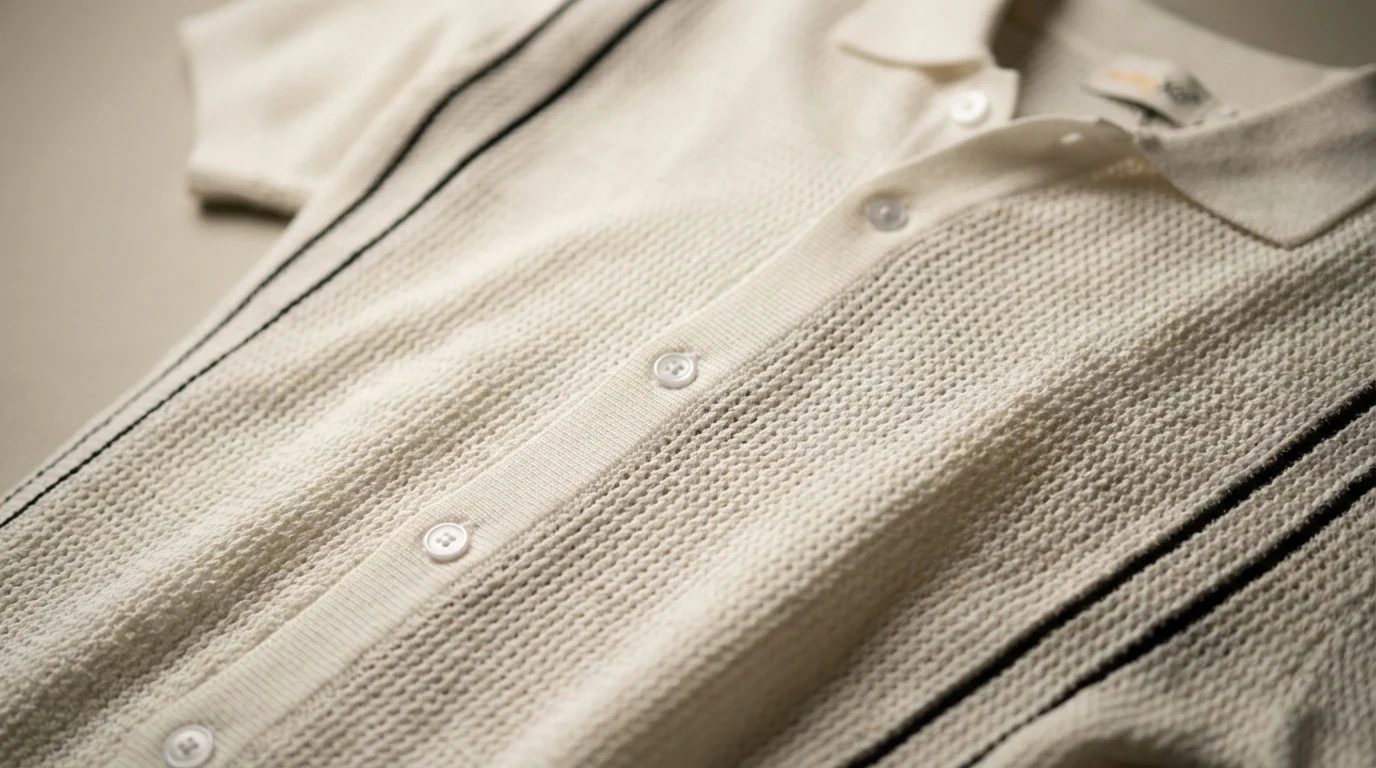 Elevate your resort wear collection with this masterfully crafted mesh knit polo. Designed for the modern Indian man who values both breathability and high-street sophistication, this piece features a unique open-weave texture that ensures maximum airflow during humid summers. The clean off-white base is punctuated by sharp, vertical black racing stripes, offering a contemporary nod to vintage varsity aesthetics.
