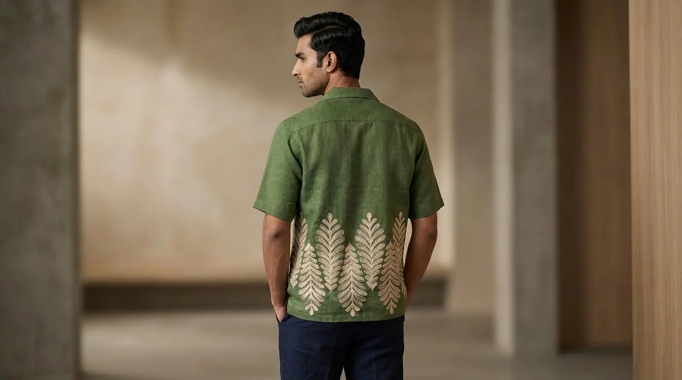 Designed for the discerning Indian man, the silhouette offers a relaxed, breathable fit that excels in tropical climates. The clean-finished hem and mother-of-pearl style buttons reflect a commitment to high-end tailoring. Whether styled for a coastal getaway or an upscale sundowner in the city, this piece embodies a relaxed elegance that is both timeless and distinctively modern.
