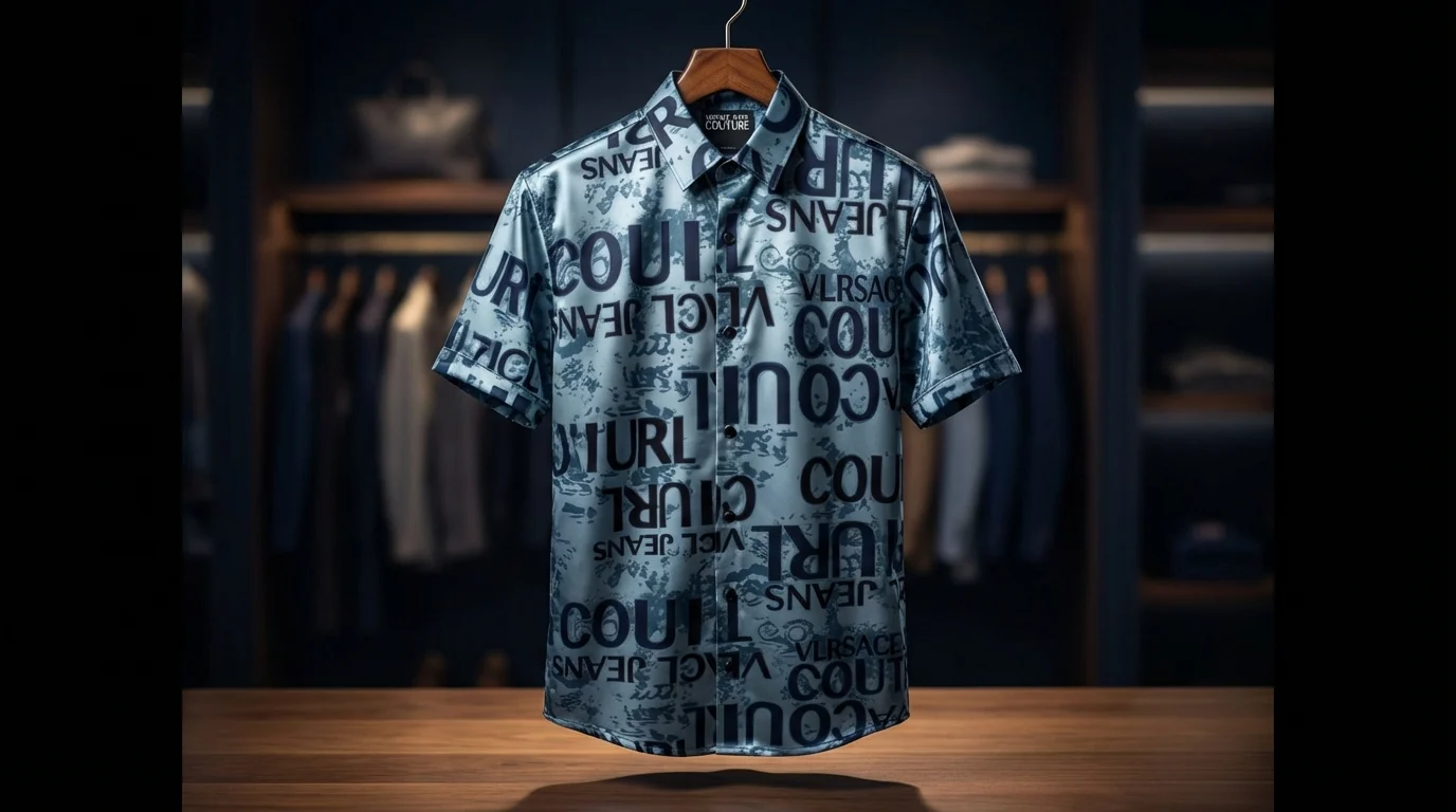 The silhouette is clean and contemporary, featuring a classic button-down front and a sharp pointed collar. Whether paired with tailored trousers for a formal gala or slim-fit dark denim for a night out in the city, this shirt provides a bold aesthetic without compromising on elegance. It is a must-have for the discerning man who wants to blend logomania trends with timeless tailoring.