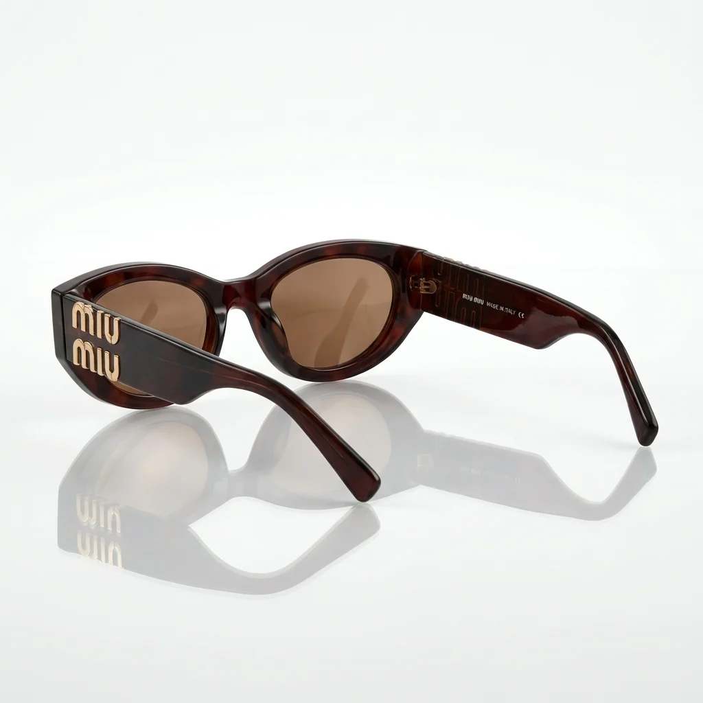 Signature Luxury: Features the iconic 3D gold-tone Miu Miu logo on the wide temples, making a bold fashion statement.