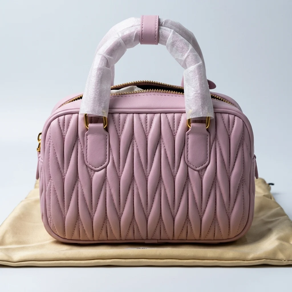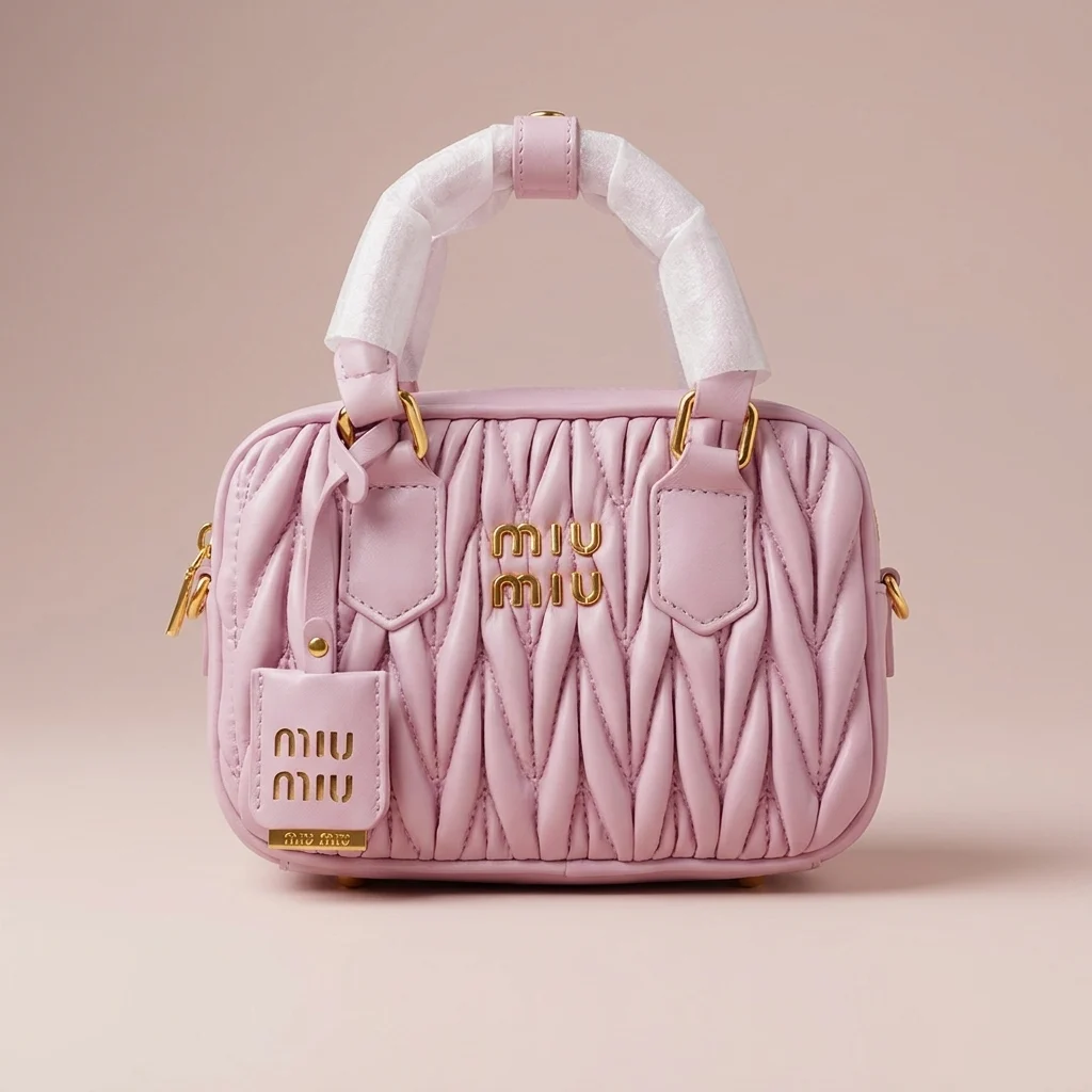 Iconic Matelassé Craftsmanship: Features the signature quilted texture that defines Miu Miu’s sophisticated aesthetic.