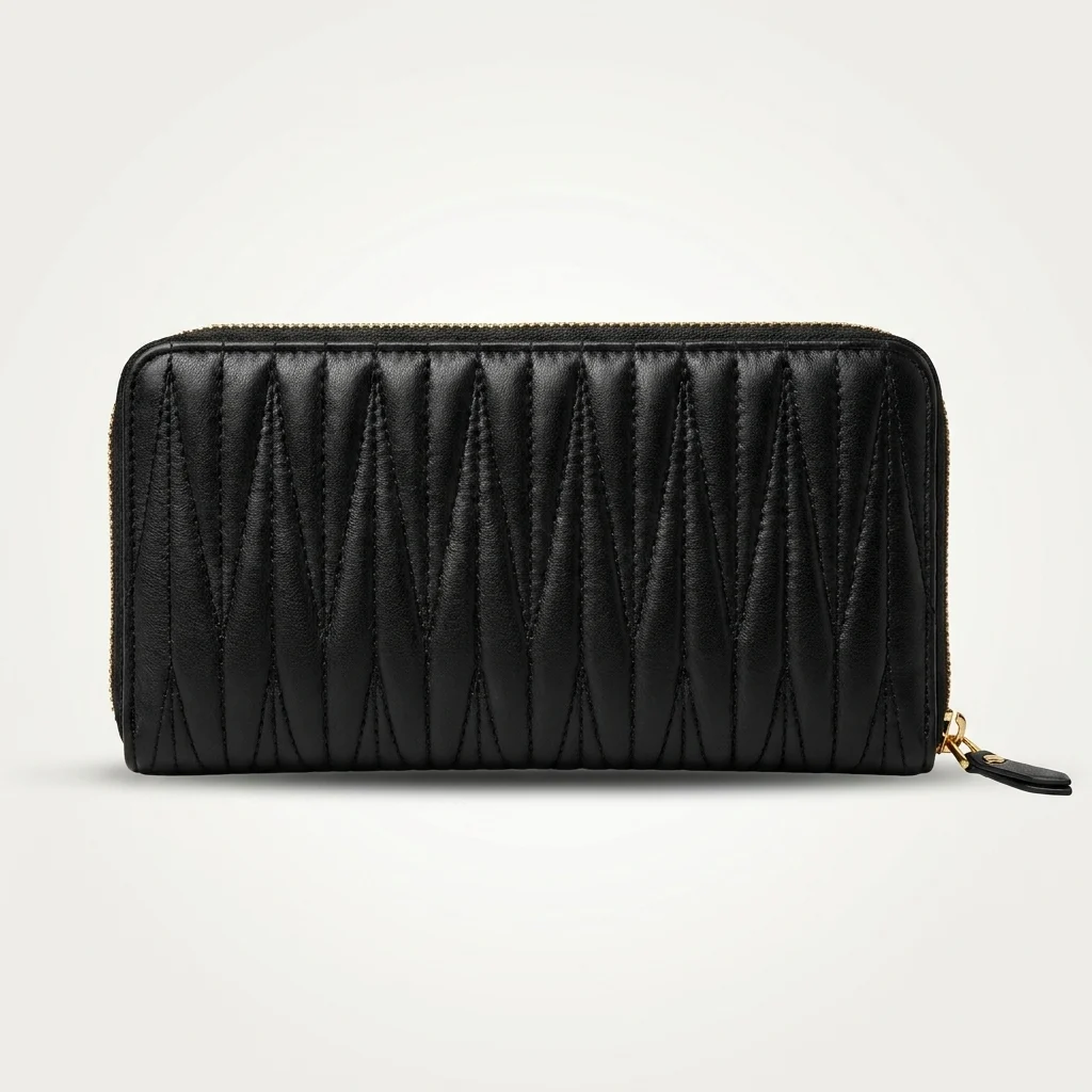 Feature Details SKU Id 70005220260507 Category Women’s Accessories / Wallets Gender Women Product Type Zip-Around Continental Wallet Fabric / Material Nappa Leather Fit Type Not Applicable Pattern / Print Matelassé (Quilted) Occasion Formal, Casual, Premium Gifting Season All-Season Care Instructions Wipe with a soft, dry cloth; store in a dust bag when not in use.
