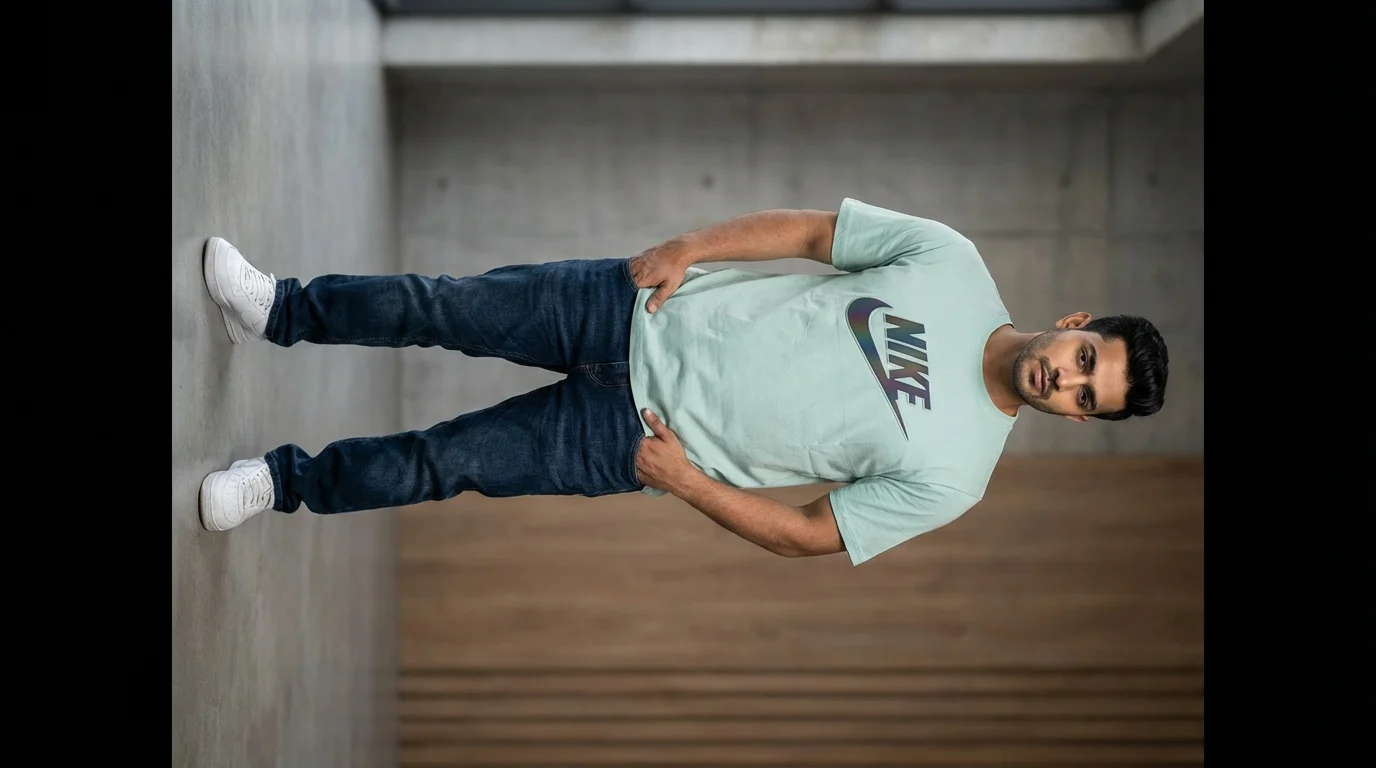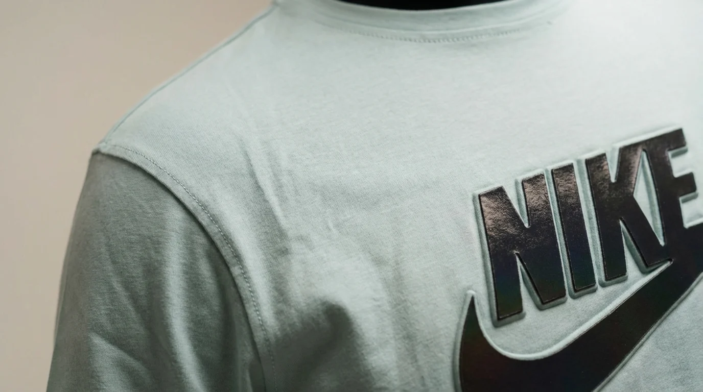 Holographic Branding: High-impact Nike logo with a color-shifting metallic finish that catches the light.