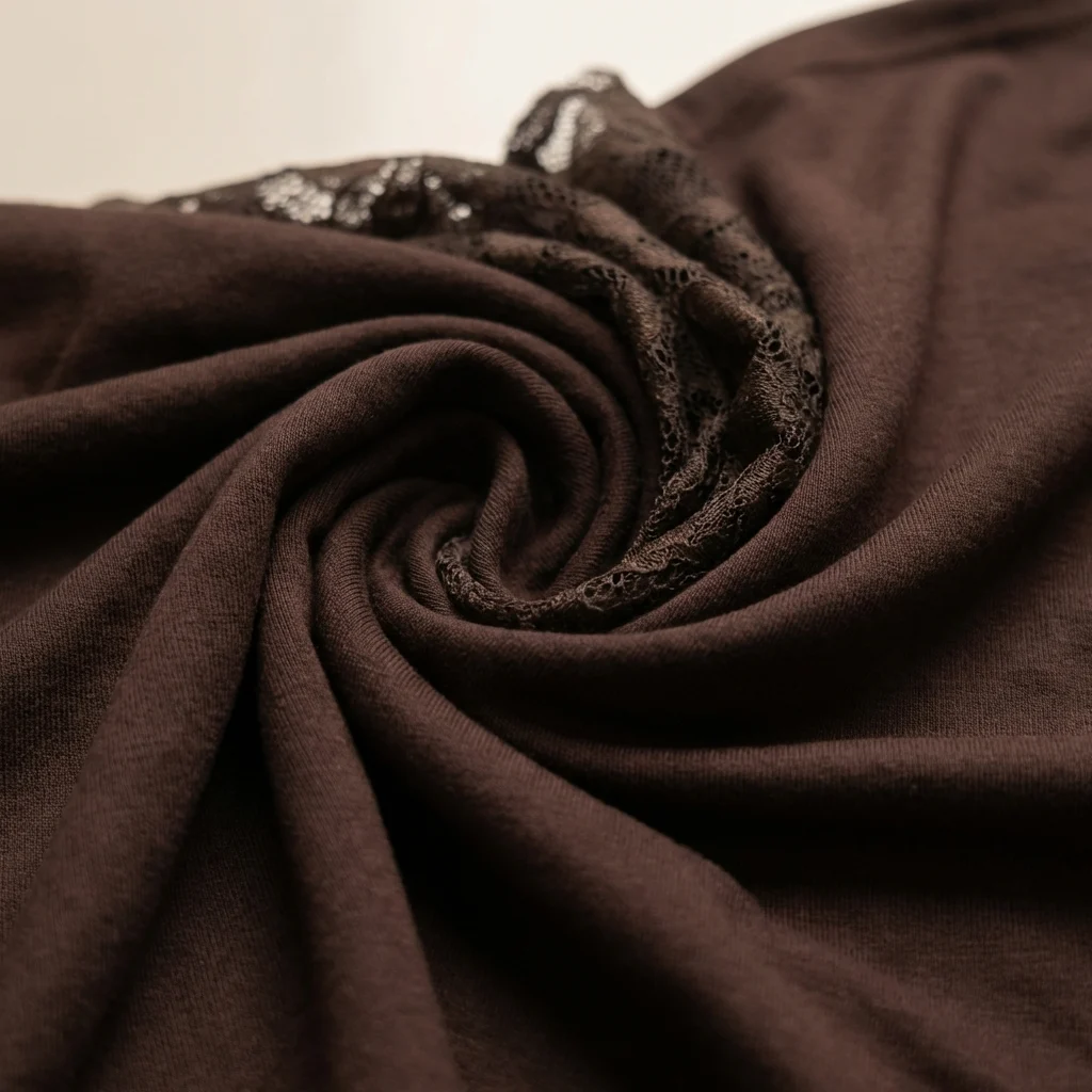 Off-the-Shoulder Lace Trim Top in Rich Cocoa