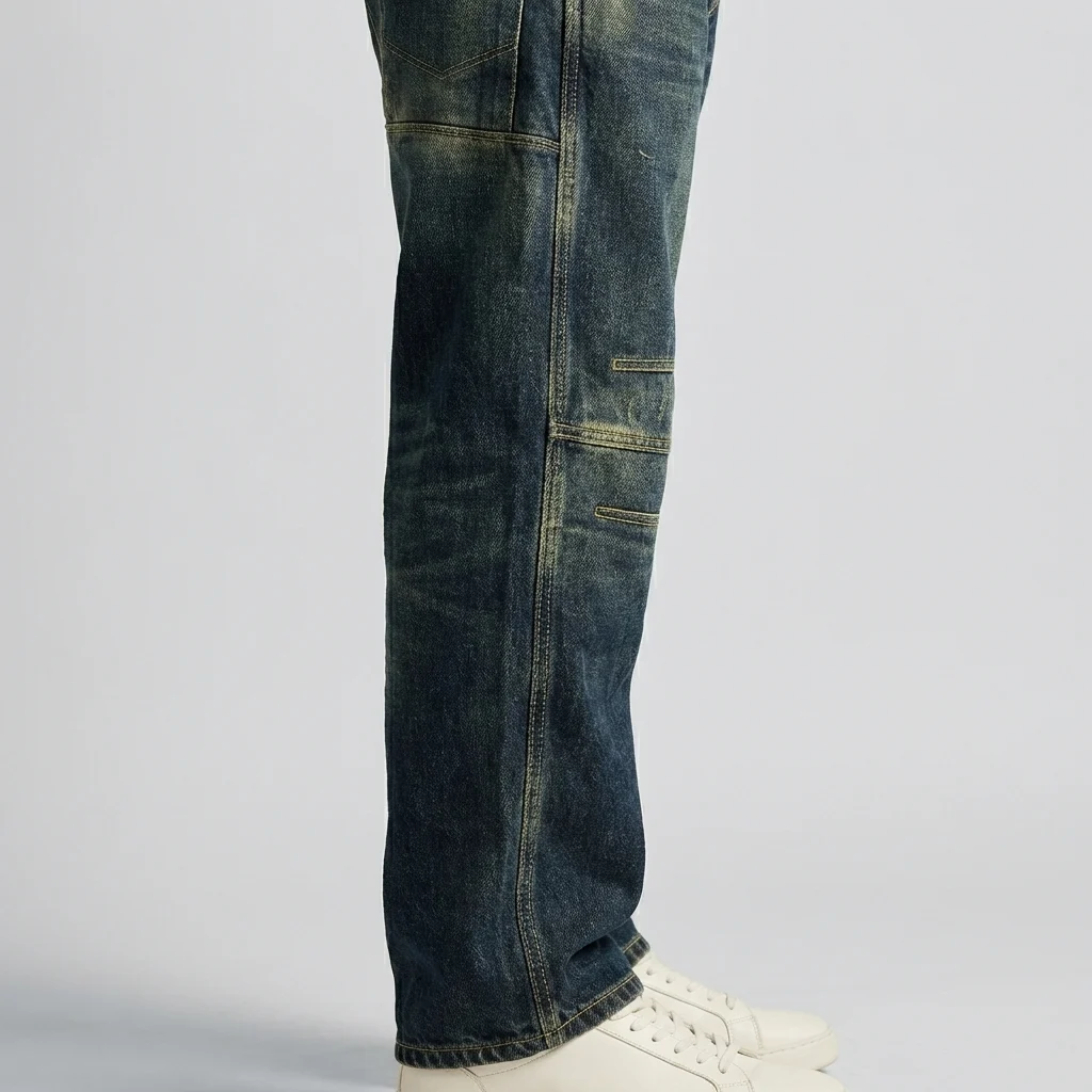 Rugged Urban Aesthetic: Features unique horizontal knee paneling and a vintage-inspired “dirty” wash for a modern streetwear edge.