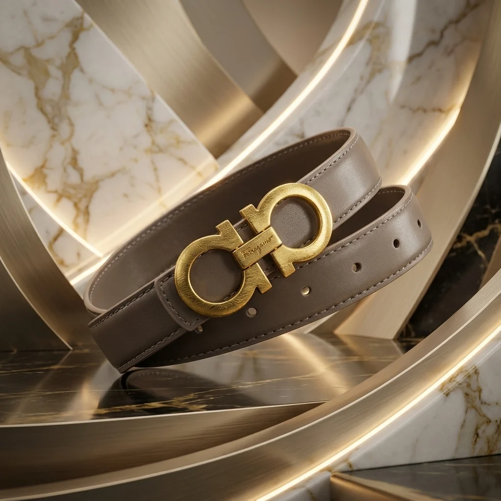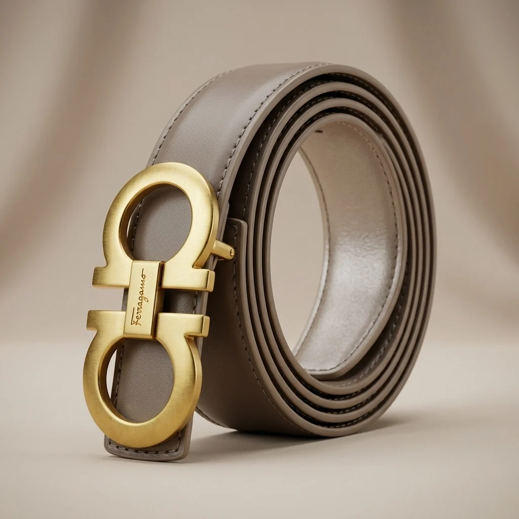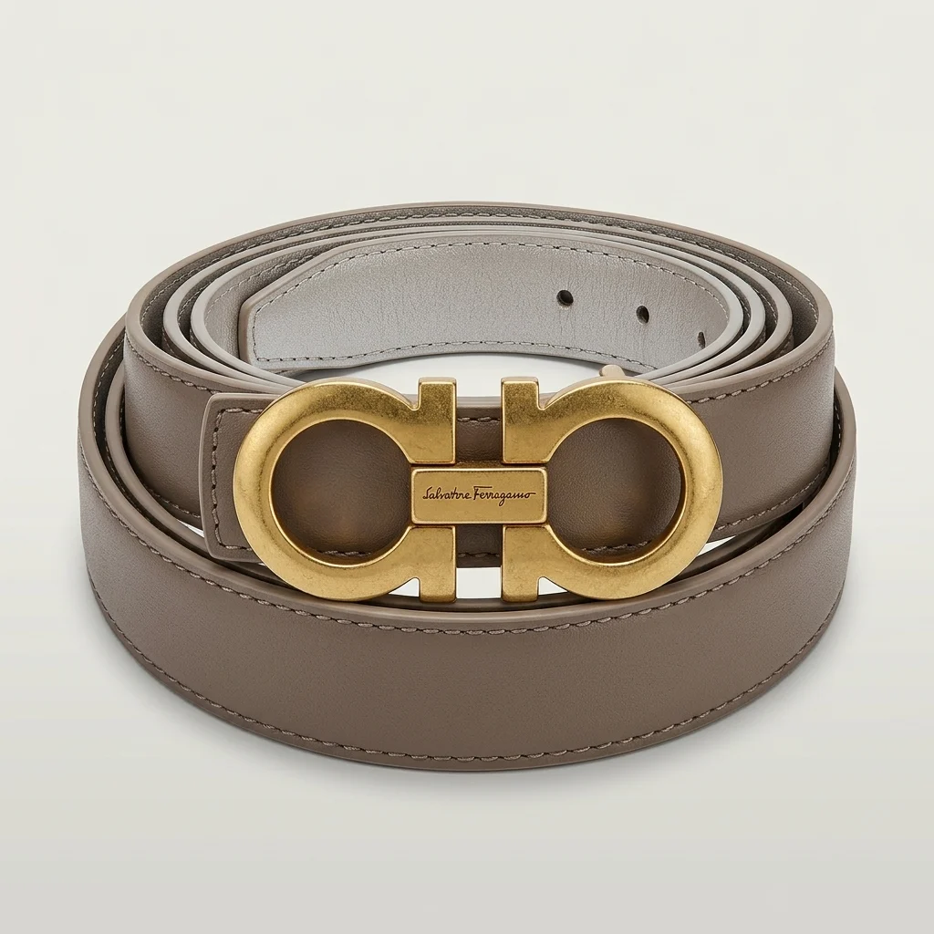 Iconic Italian Elegance: Features the signature double Gancini buckle in a stunning brushed gold-tone finish.