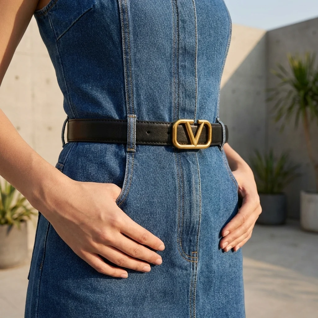 Centered by the recognizable V Logo buckle in a brushed gold tone, this belt transitions seamlessly from professional office attire to evening social gatherings. Its clean lines and precise tonal stitching reflect the superior Italian craftsmanship expected from a premier fashion house. Whether cinching a blazer or adding structure to a light summer dress, this accessory remains a symbol of quiet luxury.