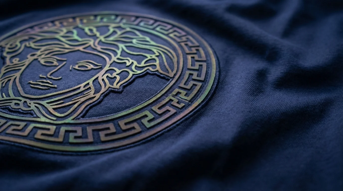 Pattern / Print Solid with Iridescent Medusa Emblem