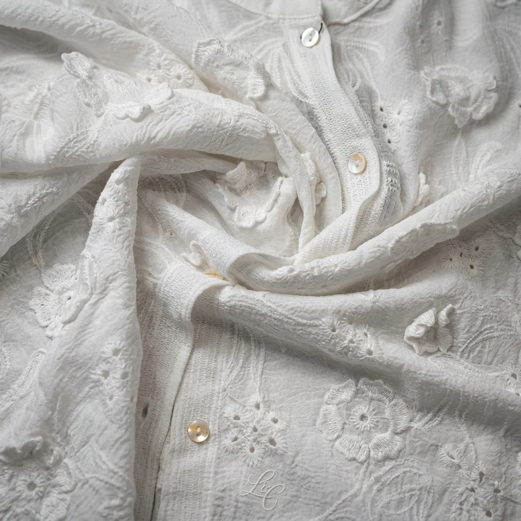 Exquisite Craftsmanship: Features intricate 3D floral appliques and delicate eyelet embroidery for a high-end, textured finish.