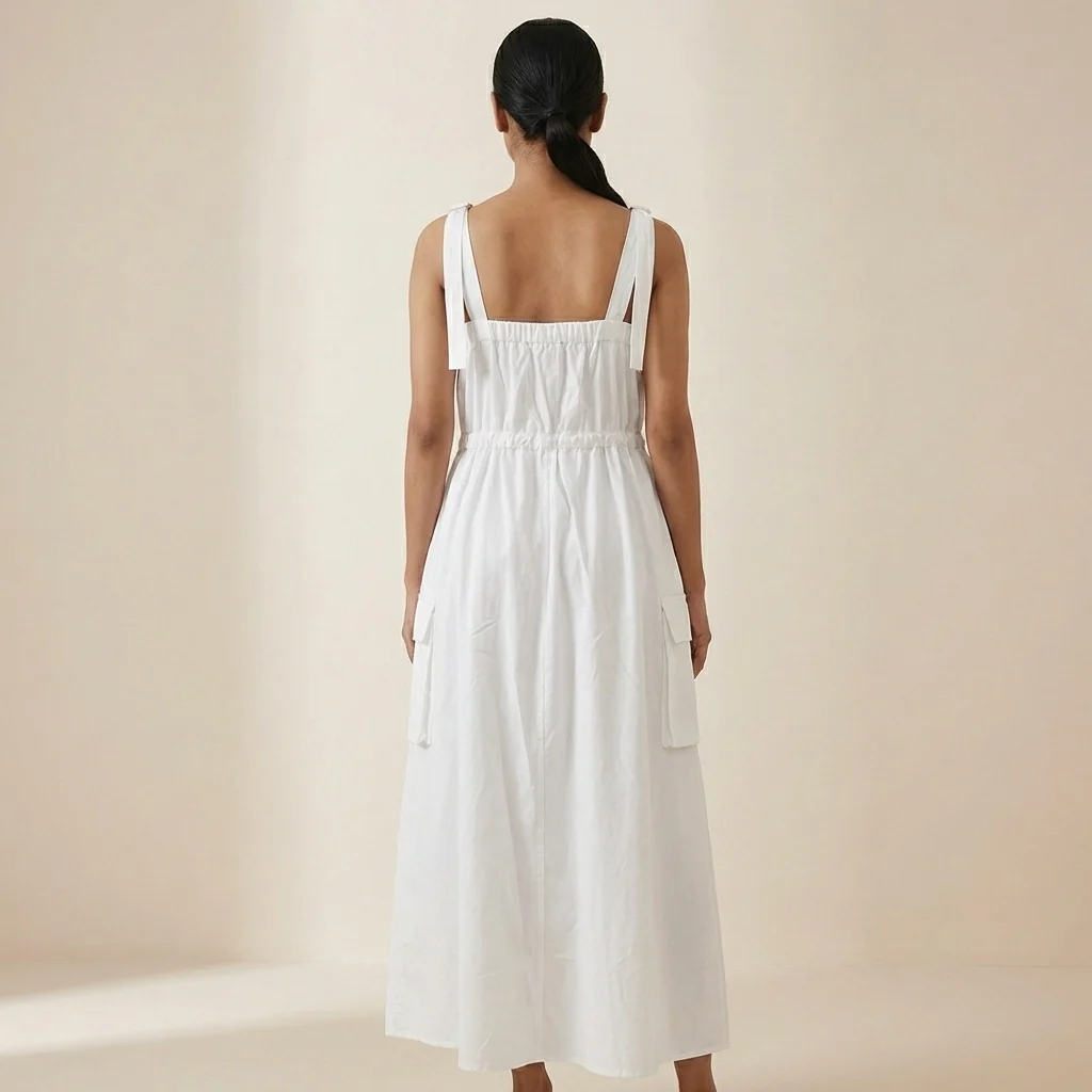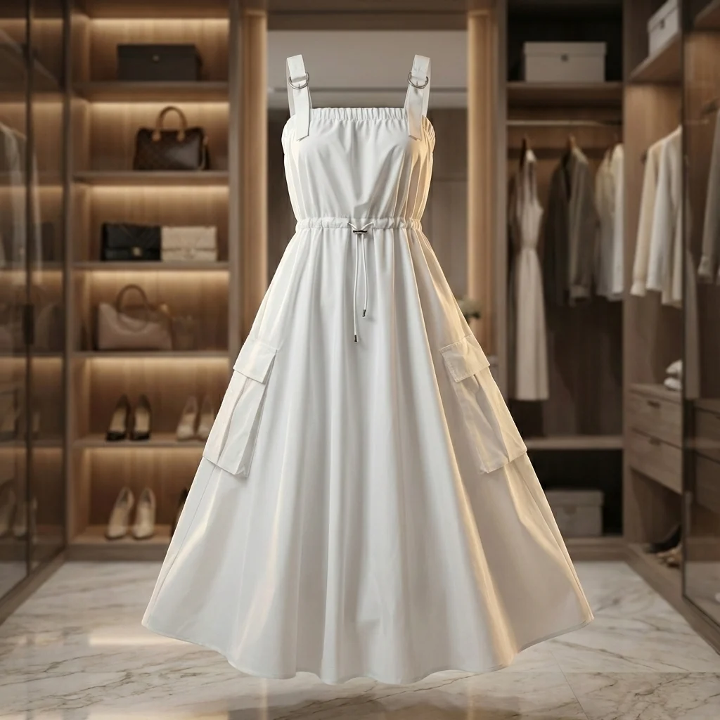 Redefine your wardrobe with a piece that bridges the gap between minimalist elegance and rugged utility. This Korean-inspired parachute maxi dress is designed for the modern woman who values style without compromising on ease. The crisp white hue offers a refreshing, clean slate, while the architectural silhouette ensures you stand out in any crowd.