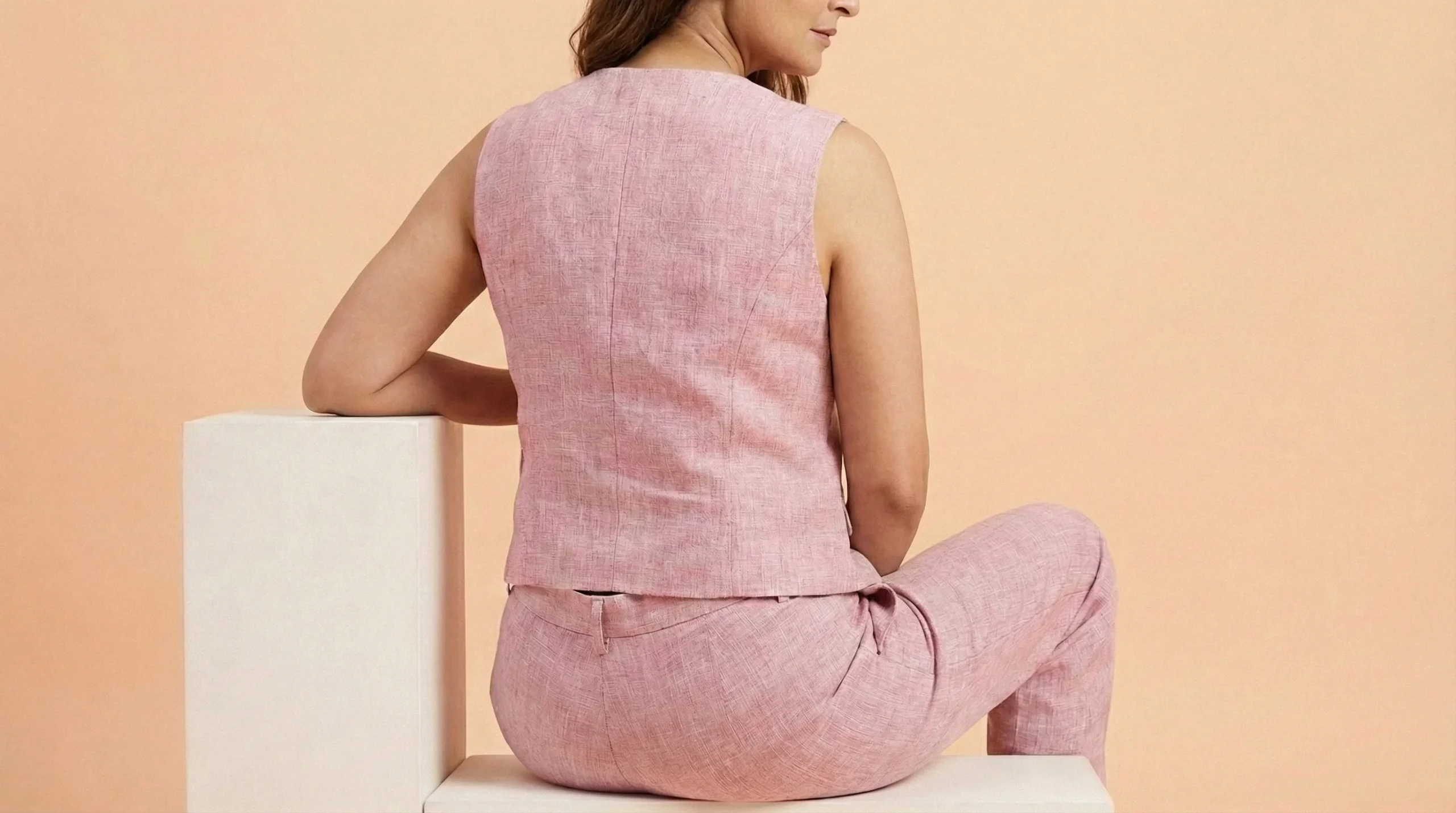 Sleek Sophistication: A tailored sleeveless vest paired with matching trousers for a cohesive, high-fashion look that commands attention.
