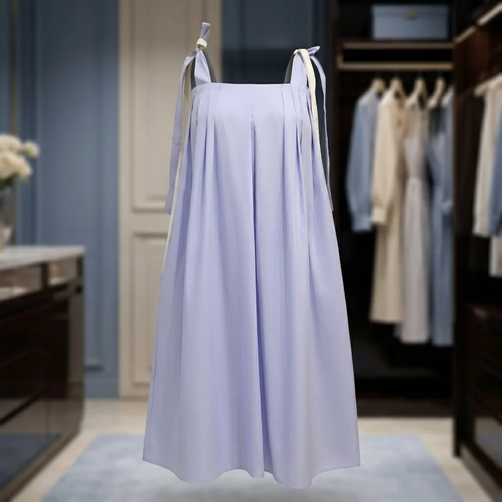 Charming Tie-Up Shoulders: Functional ribbon straps that tie into elegant bows, allowing for an adjustable fit and a feminine touch.