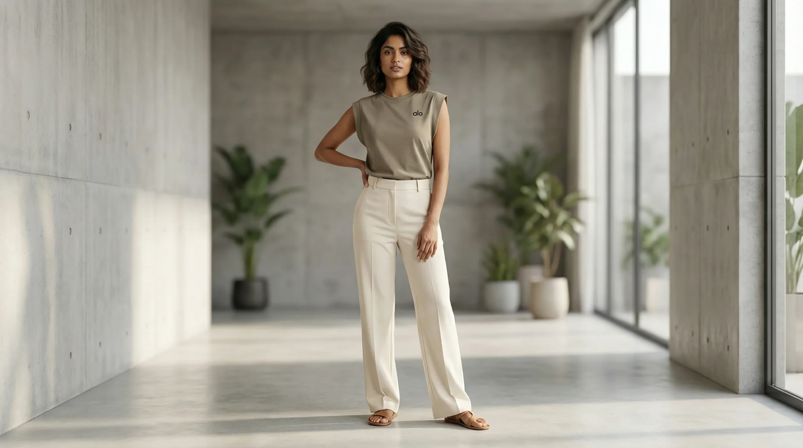 Elevate your everyday rotation with a piece that balances athletic heritage and high-fashion minimalism. This muscle tee is crafted from a sophisticated, fine-gauge jersey that offers a soft, lived-in feel without compromising on structure. The muted sage-khaki hue provides a versatile neutral base, perfect for the modern Indian woman who values a “quiet luxury” aesthetic in her active and leisure wardrobes.