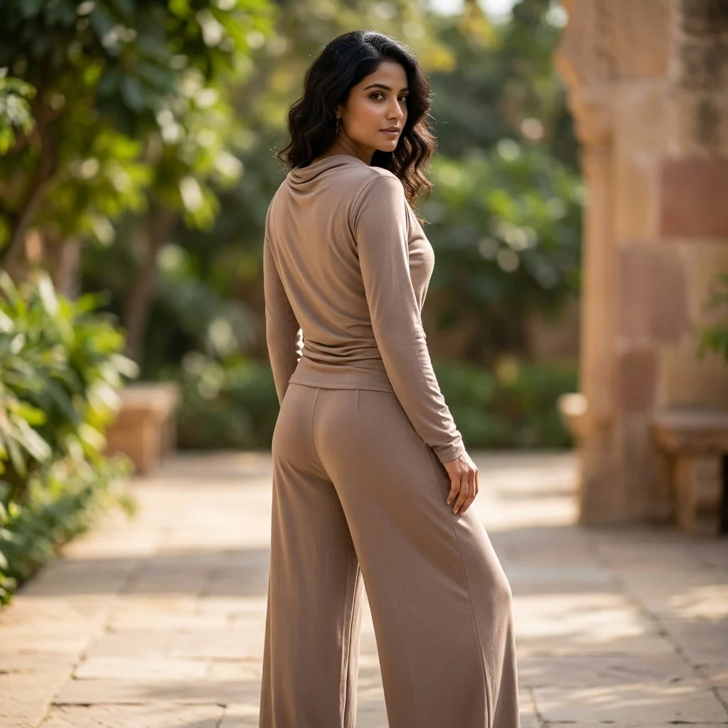 Versatile Styling: The muted taupe hue and clean boat neckline make it a perfect staple for both professional and evening wardrobes.