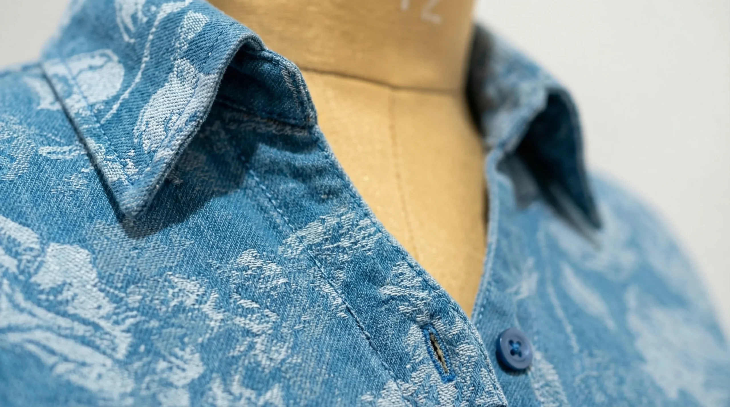 Neckline: Refined spread collar with a deep V-opening at the placket.
